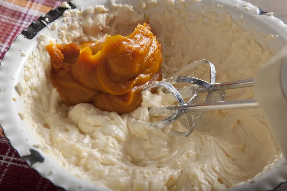 Творог взбейте миксером, добавляя яйца по одному, до однородной пышной массы, затем добавьте карамельно-тыквенное пюре и специи, взбивайте еще минуту. Массу выложите в форму с основой и запекайте около часа при температуре 160-170С. Начинка готового пирога должна чуть подрагивать — поставьте пирог в холодильник на ночь для застывания, перед подачей посыпьте сахарной пудрой.