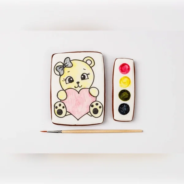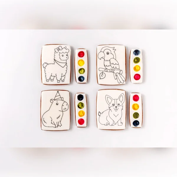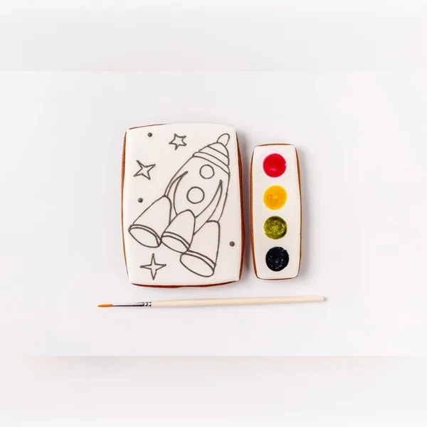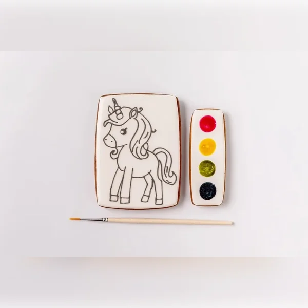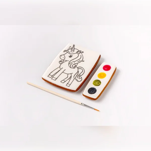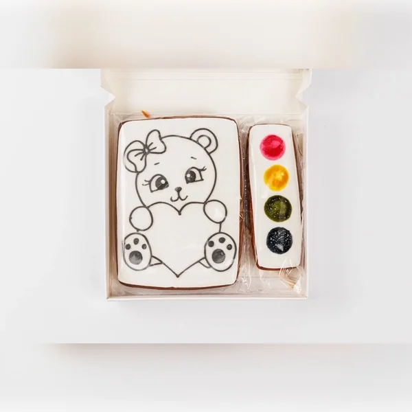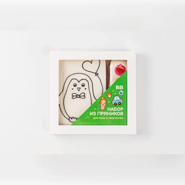 Ребёнок почувствует себя и художником, и кондитером, разукрашивая милый рисунок на пряничной глазури. Благодаря достаточно широким контурам и кисточке небольшого размера творить будет удобно даже детям младшего возраста. Сладкая палитра тоже в комплекте, осталось лишь её «оживить», капнув пару капель воды на нужный цвет. После того, как десерт будет раскрашен, его можно сохранить на память. А можно — съесть без малейших сомнений, ведь каждый использованный краситель пищевой и имеет растительное происхождение. Этот набор станет увлекательной альтернативой привычным раскраскам. И, к тому же, прекрасным подарком по поводу и без. Пожалуйста, обратите внимание, что краски после нанесения приобретают пастельные оттенки. В ассортименте представлены 4 варианта оформления пряника.