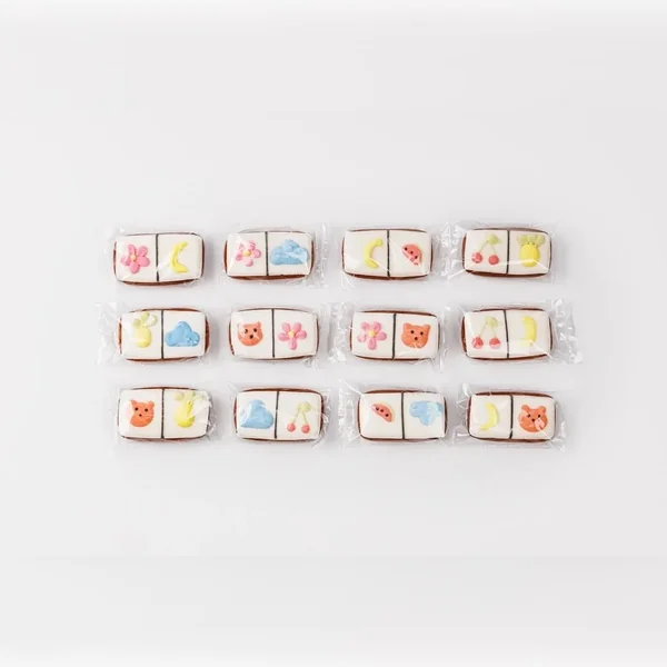 Описание:Пожалуй, игра в домино ещё никогда не была такой захватывающей, ведь сразу после партии можно устроить уютное чаепитие и съесть все плашки. Прянички обладают аппетитным пряным ароматом и насыщенным вкусом с согревающими нотами специй. Для росписи лакомства используем сахарную глазурь, подкрашенную натуральными красителями. Домино может стать оригинальным семейным развлечением на вечер, мини-подарком для сластён или приятным сувениром для похода в гости с детьми.