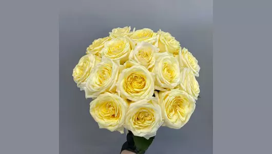 Букет из 15 пионовидных роз под ленту. Он станет прекрасным подарком на день рождения, годовщину, свадьбу или просто чтобы порадовать близкого человека без повода.