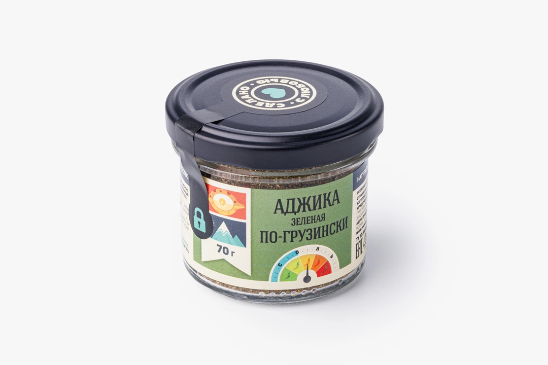 Классическая приправа народов Кавказа придаст вашим блюдам характерный аромат. В ней свежесть зелени сочетается с остротой красного перца, кинза и базилик вносят выразительный травяной акцент, а чеснок, майоран и кориандр — пикантность. Эту смесь специй отличает яркий запах уцхо-сунели, кондари и имеретинского шафрана, который не спутать ни с чем. Аджика подходит для приготовления соусов и маринадов, её можно добавить к мясу и птице, а также в супы. Храните баночку в сухом месте с плотно закрытой крышкой.