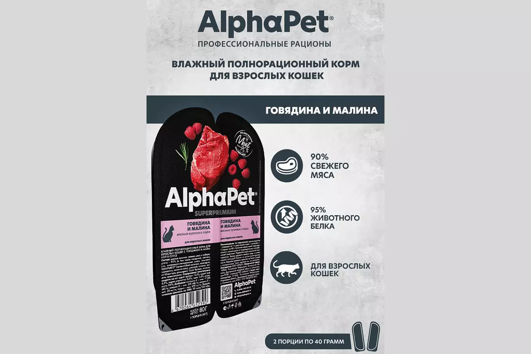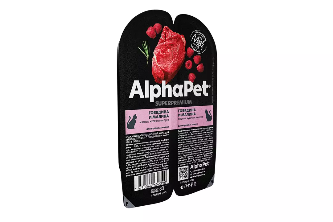 ALPHAPET Adult Корм влаж.говядина,малина д/кошек лам.80г / Супермаркет
