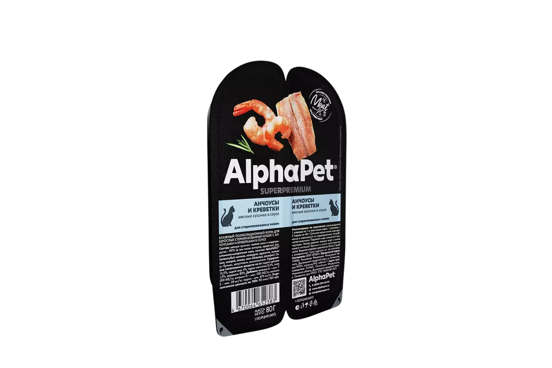 ALPHAPET Adult Sterilised Корм влаж.анчоусы,креветки д/стерилизованных кошек лам.80г / Супермаркет