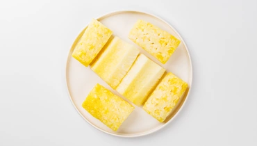 Спелый очищенный ананас, нарезанный аккуратными дольками. Можно подать в свежем виде, добавить в смузи, кашу или использовать для декора блюд. А в запечённом виде тропический плод отлично исполнит роль праздничного гарнира к мясу и птице.