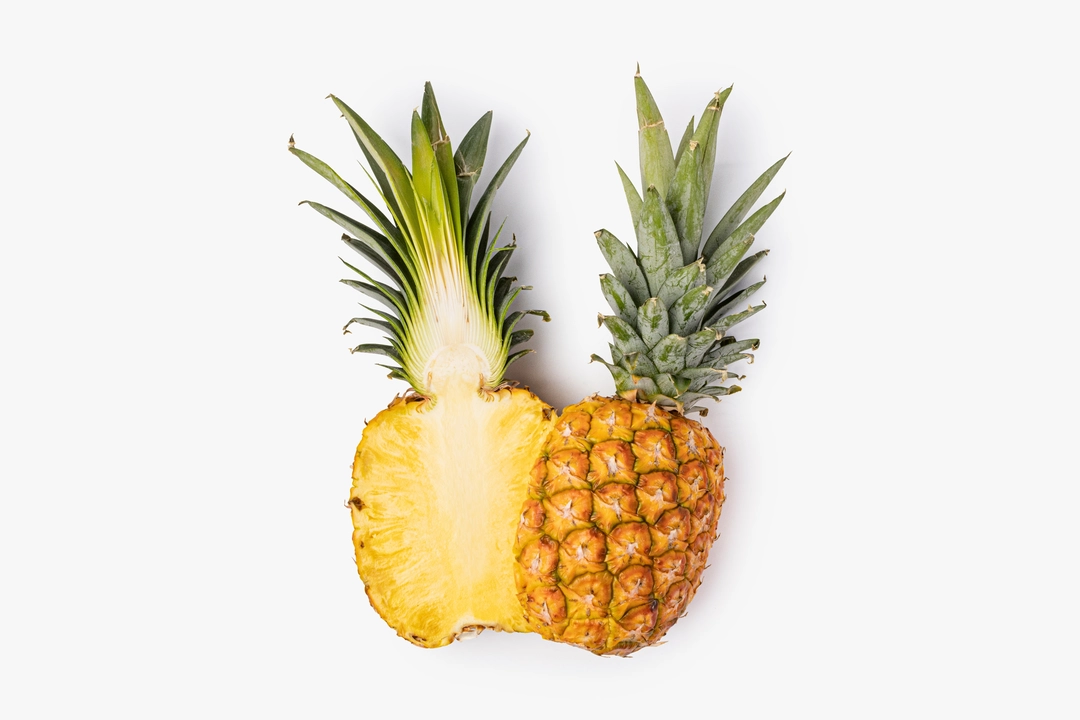Крупные ананасы срезаны на последней стадии созревания и доставлены самолётом, чтобы к вам на стол попали только самые красивые и спелые экземпляры. Мякоть у них ярко-жёлтая, плотная, с характерным сладким вкусом и кисловатыми нотами. Для фруктовых тарелок и десертов ананасы нарезают кольцами или кубиками. Мякоть добавляют в салаты, выпечку, соусы к мясу и птице