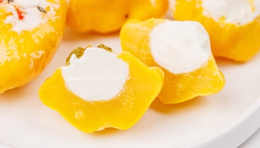 Небольшие маринованные патиссоны с пряностями и мягким сливочным сыром — оригинальная закуска в средиземноморском стиле. Патиссоны остаются хрустящими, с лёгкой кислинкой и ароматом специй, а сыр добавляет кремовости и мягкости вкусу. Всё это в ароматном масле с сушёными травами и перцами, которое делает композицию яркой и насыщенной. Можно подать как антипасти к ужину, добавить к тарелке с сыром и оливками или использовать как гарнир к запечённому мясу или рыбе. Удобный формат — сразу готово к подаче.