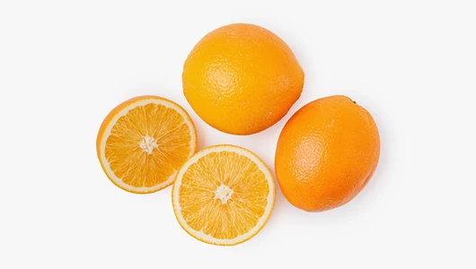 Целая авоська спелых апельсинов. У них яркий кислый вкус, сочная мякоть, тонкая кожица и мало косточек. Из минусов — довольно плотные перегородки. Но это не помешает им превратиться в отменный фреш или бодрящий смузи.