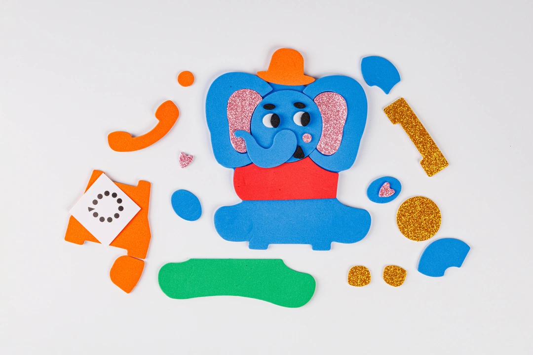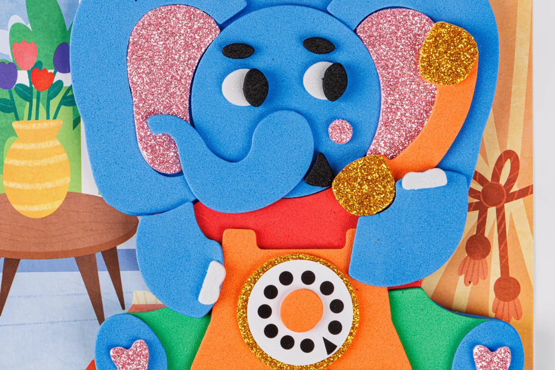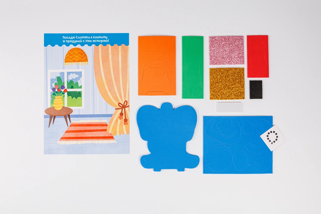 С помощью игрового набора малыш соберёт мягкую аппликацию из разноцветных деталей. Элементы с клеевым слоем легко отделяются от основы и прочно фиксируются на картонном фоне. Ребёнок развивает мелкую моторику, аккуратно размещая части картинки и создавая рельефное изображение. Готовая поделка получается фактурной и приятной на ощупь — её хочется рассматривать и показывать близким. Все материалы безопасны для детей, а клеевой слой избавляет от необходимости использовать дополнительные принадлежности.