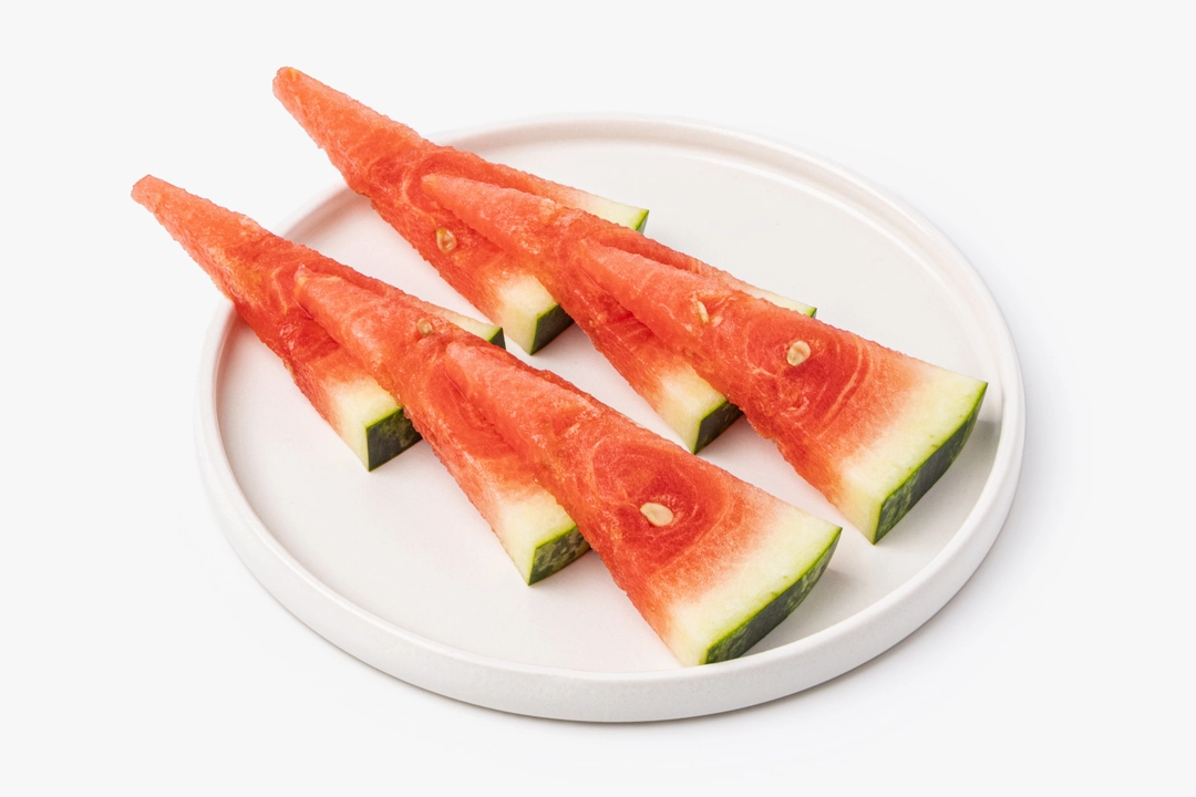 Сочная красная мякоть без твёрдых чёрных косточек — такой арбуз удобно резать и есть, не отвлекаясь на семечки. Внутри могут встречаться маленькие светлые зёрнышки — это нормально для арбузов без косточек. Вкус сладкий, освежающий, текстура хрустящая, поэтому арбуз хорошо подходит для нарезок, фруктовых десертов и блюд, где важна аккуратная мякоть. Небольшой размер позволяет съесть его за раз, не думая о хранении разрезанного плода