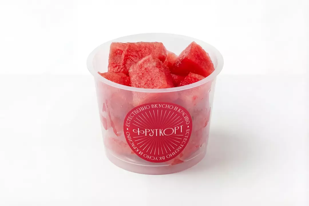 Сочный сладкий арбуз, нарезанный кубиками. Используем спелые плоды и обновляем нарезку утром, днём и вечером — всегда свежий. Готов к употреблению, только мякоть. Фруткорт — это наша собственная кухня, где мы сами готовим свежие нарезки и напитки в течение дня. Больше информации и другие позиции можно найти в каталоге по слову «фруткорт».