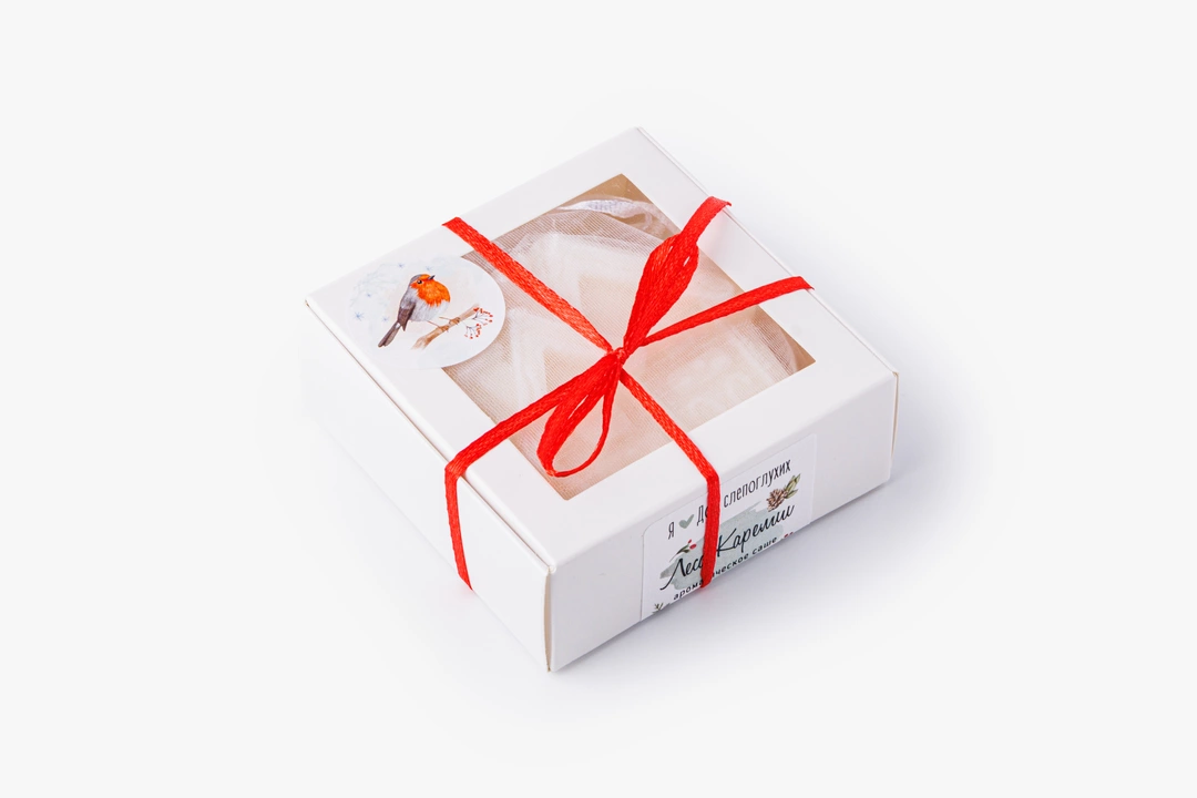 Оригинальное аромасаше напомнит о прогулках в заснеженных карельских лесах с их хвойной свежестью и морозным воздухом. Древесные ноты кедра переплетаются с лёгкой смолистостью янтаря и прохладой эвкалипта. В композиции чувствуется тёплый шлейф кожи и суховатый оттенок табачного листа. Нейтральная соевая основа раскрывает букет постепенно, сохраняя стойкость аромата. Саше в подарочном мешочке можно разместить в шкафу или на полке. Изделие создано мастерами благотворительного фонда «Дом слепоглухих», где творят люди с инвалидностью. Приобретая этот товар, вы вносите важный вклад в проект «Добрая полка». Он создан, чтобы оказать благотворительным фондам поддержку в продаже собственной уникальной продукции.