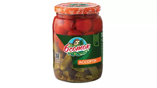Ассорти 6 соток огурцы и помидоры черри маринованные с/б 680 г / Супермаркет