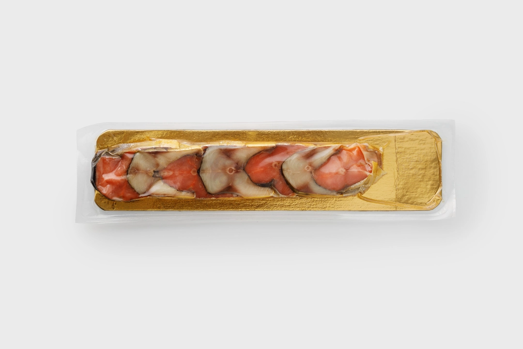 Ароматное ассорти из рыбы холодного копчения: горбуши и скумбрии. Нежная текстура и тонкий контраст вкусов: сладковатого и насыщенного рыбного. Без консервантов