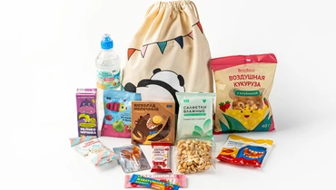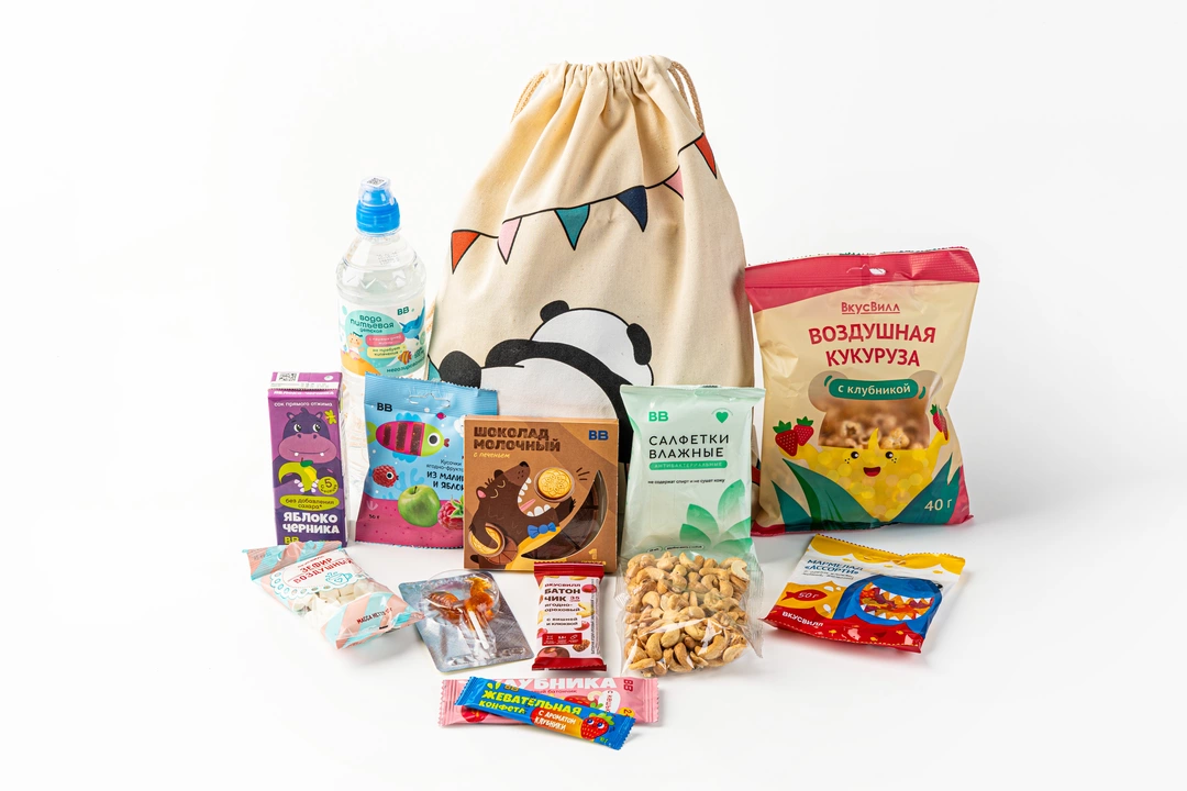 Набор с детскими снеками и полезными мелочами удобно взять в дорогу или подарить перед поездкой. Внутри — вода, сок, воздушная кукуруза, зефир, орехи, батончики, мармелад, конфеты и салфетки, которые точно пригодятся в пути. Всё это собрано в плотный тканевый рюкзачок с весёлым рисунком — его можно использовать снова и снова для хранения игрушек, перекусов или других детских сокровищ. Состав набора может немного меняться в зависимости от наличия товаров в магазине.