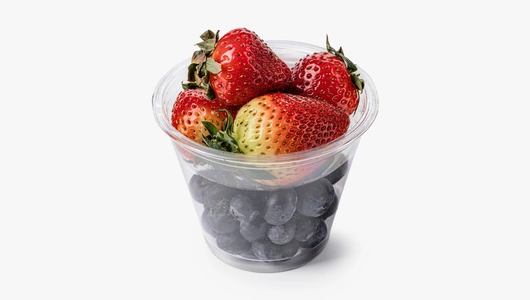 Яркая клубника и тёмная голубика в одном стаканчике — это ассорти с неповторимым летним ароматом. Оно подойдёт для приготовления десертов и завтраков. Ягоды можно добавлять в творог, йогурт или овсянку для придания им свежего оттенка с лёгкой кислинкой. Они также хороши для фруктовых салатов и украшения выпечки.