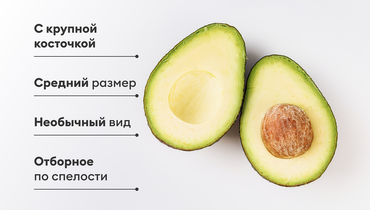 Идеально зрелое авокадо Хасс — в самый раз для подачи на стол! Кожица у авокадо Хасс имеет фиолетовый оттенок, она довольно жёсткая, даже шершавая. А светло-зёленая мякоть спелого плода обладает кремово-маслянистой текстурой и нежным сливочным вкусом с ореховыми нотками. При этом косточка и кожица легко отделяются от мякоти. Сорт Хасс станет любимым для тех, кто согласен только на идеальное гуакамоле или не представляет свой завтрак без авокадо-тостов с лососем или яйцом-пашот.