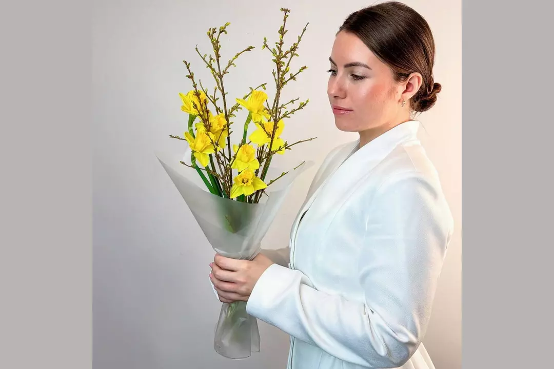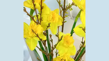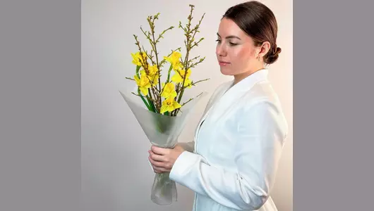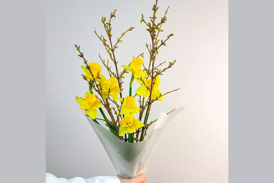 Яркий, сочный букет, создающий праздничное настроение с первого взгляда. Идеальный способ удивить, восхитить и запомниться. С ним ваш подарок станет главным акцентом дня. 🌷 Чтобы цветы радовали как можно дольше 🌷: * Обновите срез секатором или острым ножом на 1 см под углом 45 градусов. * Поставьте цветы в отстоянную воду комнатной температуры. * Меняйте воду каждый день и обновляйте срез раз в 1–2 дня. * Убирайте нижние листья, чтобы они не касались воды. * Срезайте увядшие бутоны. * Держите цветы подальше от фруктов, сквозняков, прямых солнечных лучей, источников тепла (батареи, настольные лампы, кипящий чайник). Состав Нарцисс - 7 шт. Лента атласная - 1 шт. Форзиция - 4 шт. Упаковка дизайнерская - 1 шт.
