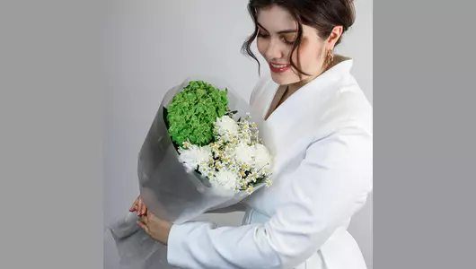 Может ли один букет преобразить пространство, наполнить его красотой и уютом? Этот — может! Но советуем не верить нам на слово, а заказать и проверить 😉 🌷 Чтобы цветы радовали как можно дольше 🌷: * Обновите срез секатором или острым ножом на 1 см под углом 45 градусов. * Поставьте цветы в отстоянную воду комнатной температуры. * Меняйте воду каждый день и обновляйте срез раз в 1–2 дня. * Убирайте нижние листья, чтобы они не касались воды. * Срезайте увядшие бутоны. * Держите цветы подальше от фруктов, сквозняков, прямых солнечных лучей, источников тепла (батареи, настольные лампы, кипящий чайник). Состав: Гортензия - 1 шт. Писташ - 1 шт. Гвоздика - 5 шт. Лента атласная - 1 шт. Ромашка кустовая - 4 шт. Упаковка дизайнерская - 1 шт.