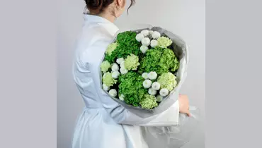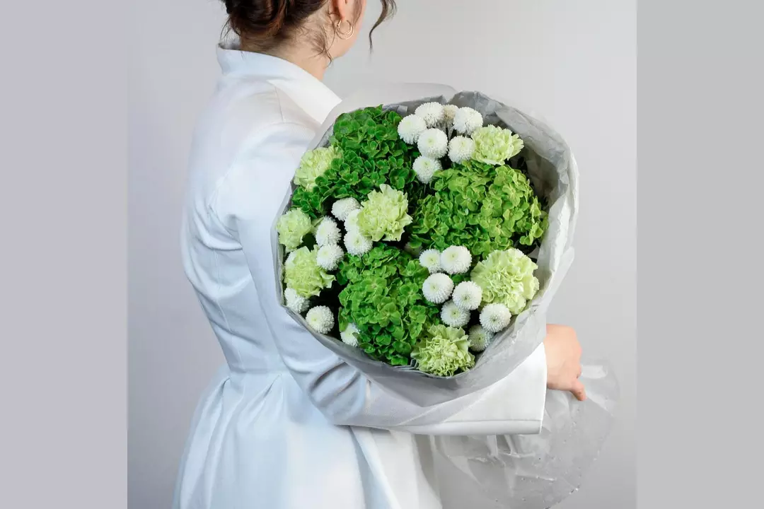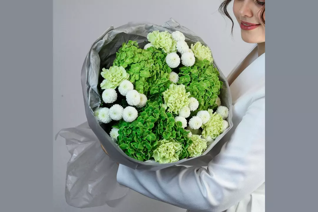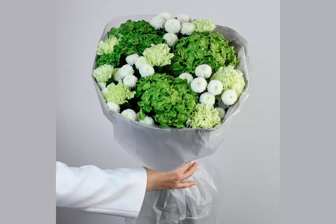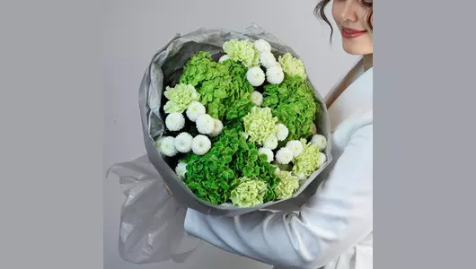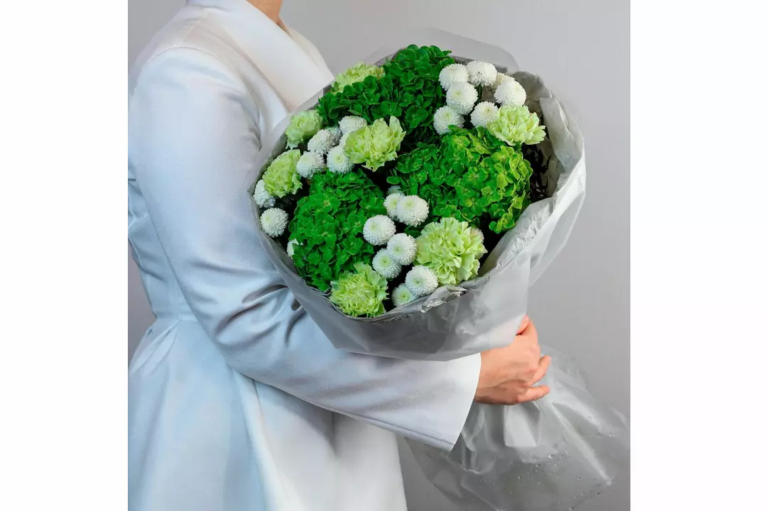 Авторский букет из гортензий и хризантемы "Изумрудная роса" FMART by flowwow