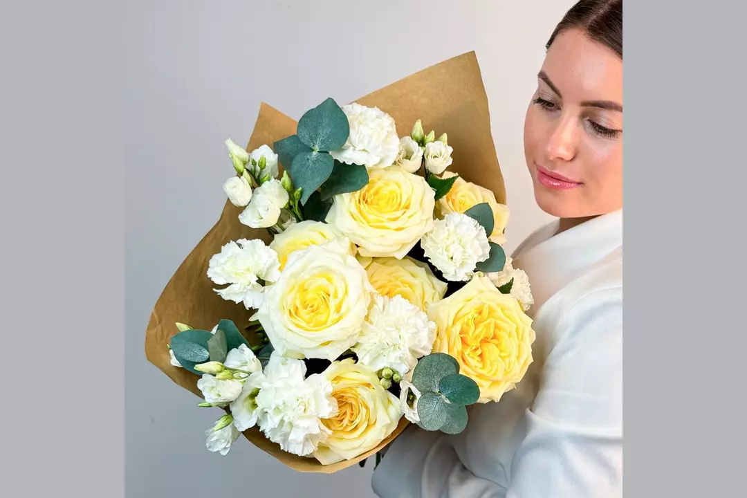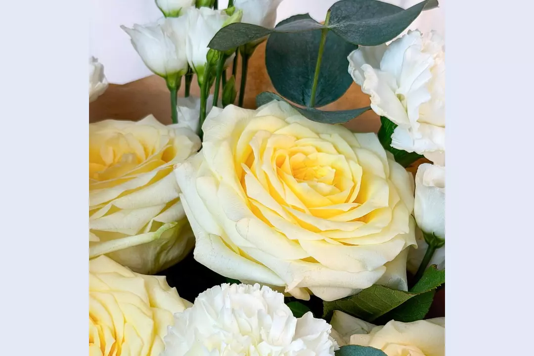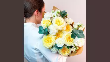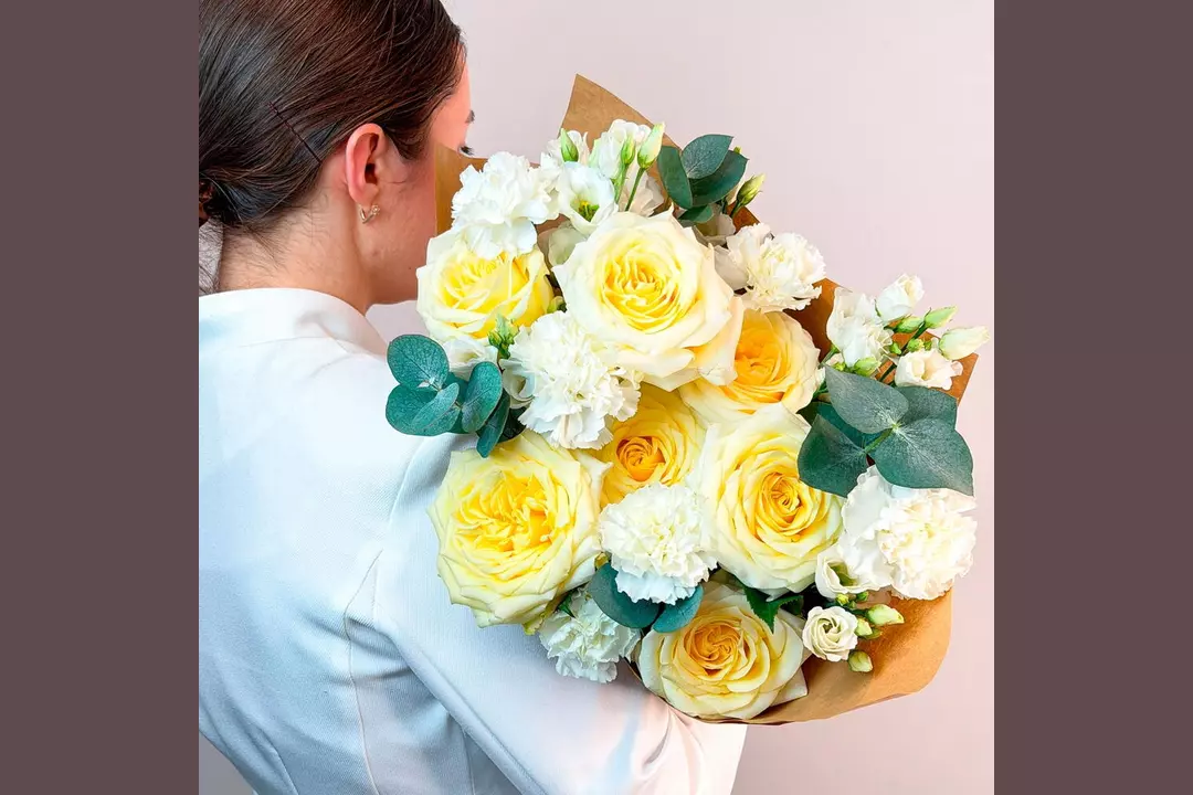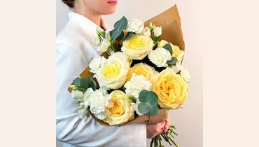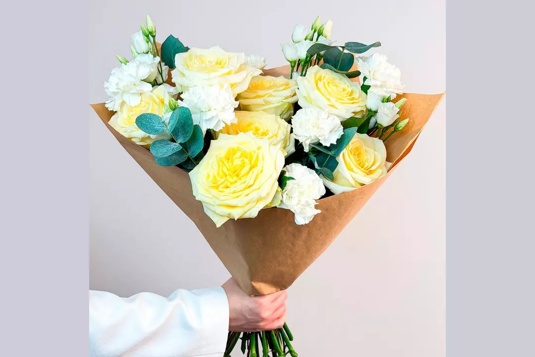 У этого букета есть потрясающая способность — он вызывает улыбки, дарит приятные эмоции и помогает красиво выразить чувства. Проверено! 🌷 Чтобы цветы радовали как можно дольше 🌷: * Обновите срез секатором или острым ножом на 1 см под углом 45 градусов. * Поставьте цветы в отстоянную воду комнатной температуры. * Меняйте воду каждый день и обновляйте срез раз в 1–2 дня. * Убирайте нижние листья, чтобы они не касались воды. * Срезайте увядшие бутоны. * Держите цветы подальше от фруктов, сквозняков, прямых солнечных лучей, источников тепла (батареи, настольные лампы, кипящий чайник). Состав Лизиантус - 4 шт. Гвоздика - 7 шт. Лента атласная - 1 шт. Фисташка - 1 шт. Упаковка дизайнерская - 1 шт. Эвкалипт Цинерея - 1 шт. Роза кенделайт - 7 шт.