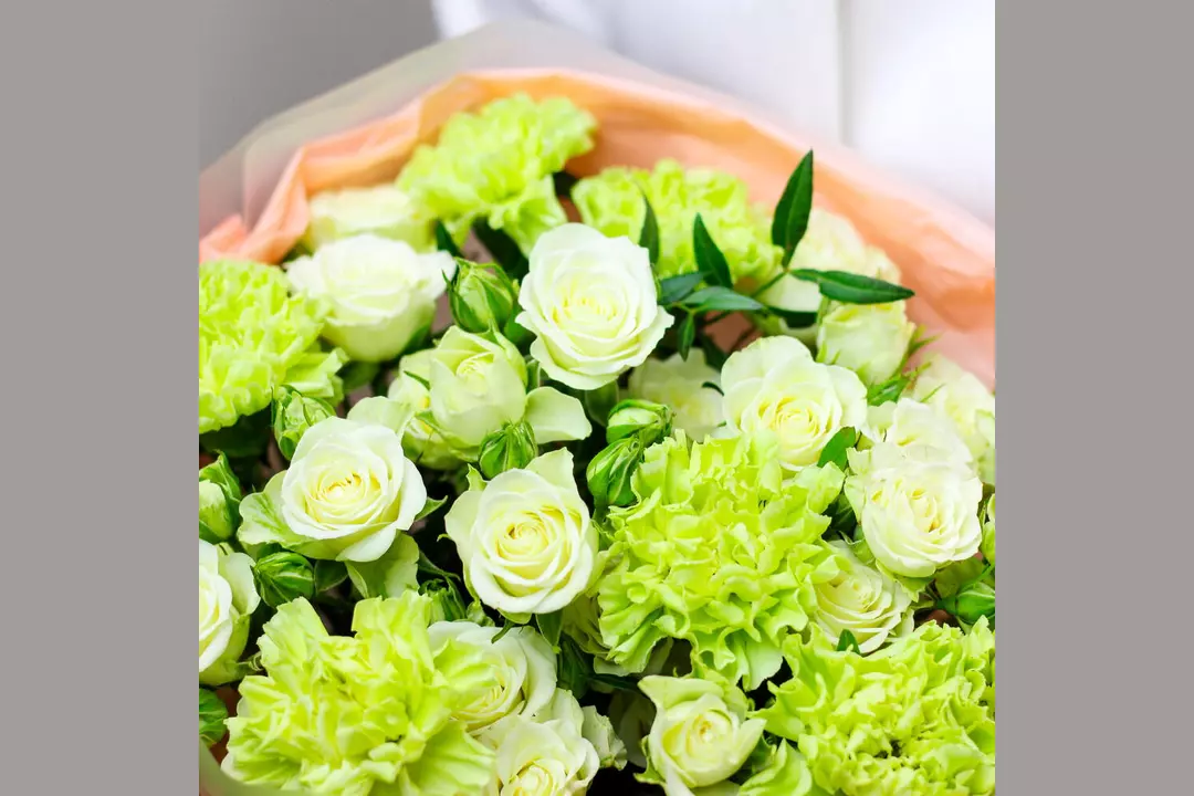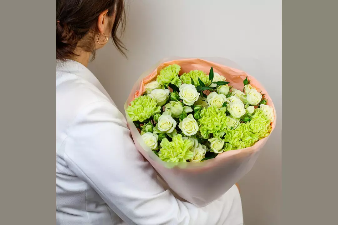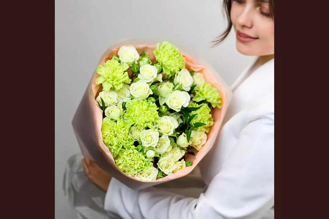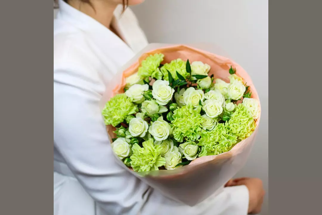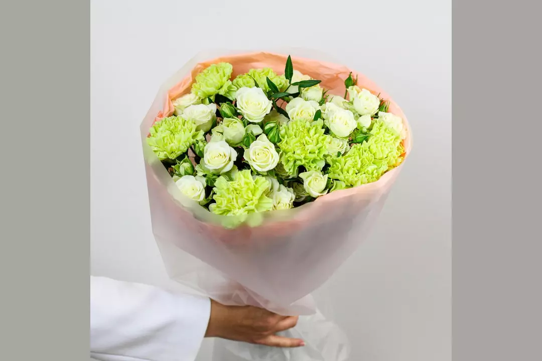 Этот авторский букет подчеркнет красоту момента и поможет выразить ваши чувства без слов. 🌷 Чтобы цветы радовали как можно дольше 🌷: * Обновите срез секатором или острым ножом на 1 см под углом 45 градусов. * Поставьте цветы в отстоянную воду комнатной температуры. * Меняйте воду каждый день и обновляйте срез раз в 1–2 дня. * Убирайте нижние листья, чтобы они не касались воды. * Срезайте увядшие бутоны. * Держите цветы подальше от фруктов, сквозняков, прямых солнечных лучей, источников тепла (батареи, настольные лампы, кипящий чайник). Состав Роза кустовая - 5 шт. Гвоздика - 7 шт. Лента атласная - 1 шт. Фисташка - 1 шт. Упаковка дизайнерская - 2 шт.