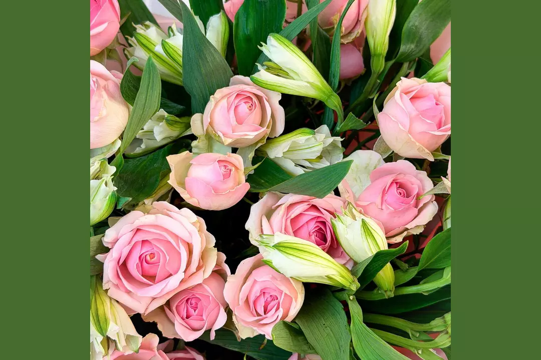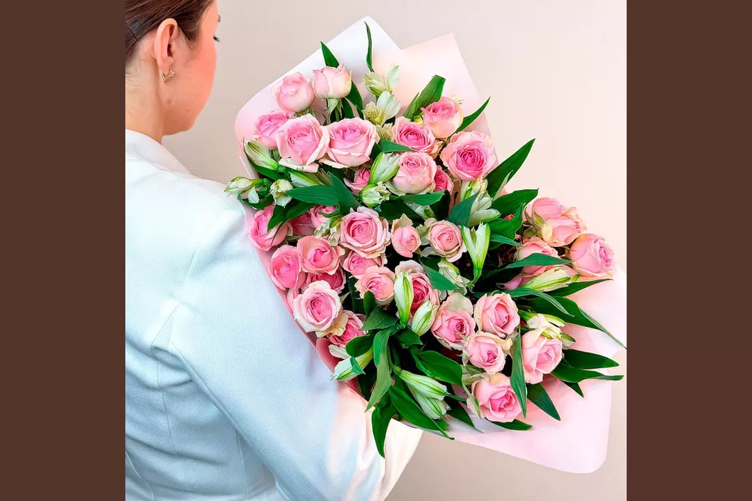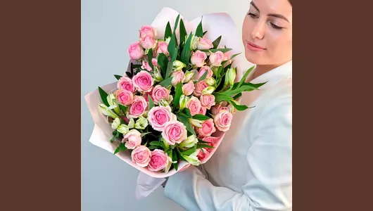 Этот авторский букет подчеркнет красоту момента и поможет выразить ваши чувства без слов. 🌷 Чтобы цветы радовали как можно дольше 🌷: * Обновите срез секатором или острым ножом на 1 см под углом 45 градусов. * Поставьте цветы в отстоянную воду комнатной температуры. * Меняйте воду каждый день и обновляйте срез раз в 1–2 дня. * Убирайте нижние листья, чтобы они не касались воды. * Срезайте увядшие бутоны. * Держите цветы подальше от фруктов, сквозняков, прямых солнечных лучей, источников тепла (батареи, настольные лампы, кипящий чайник). Состав Альстромерия - 6 шт. Роза кустовая - 7 шт. Упаковка дизайнерская - 2 шт. Фисташка зелень - 1 шт.