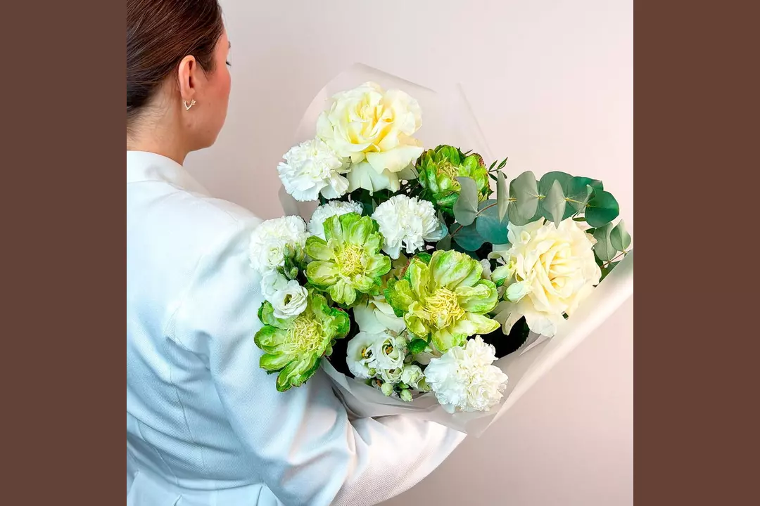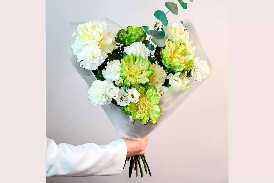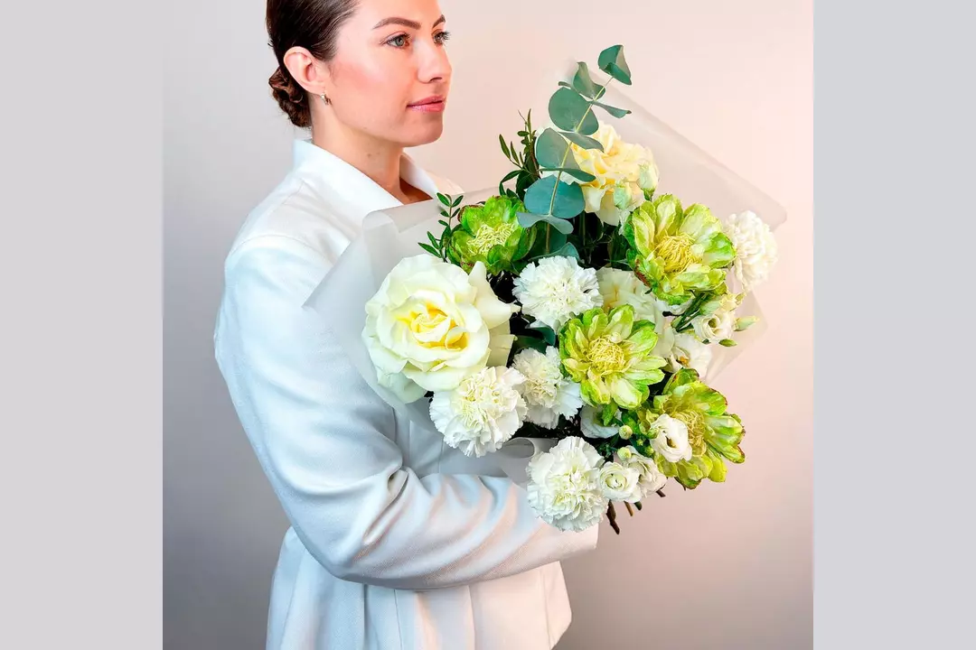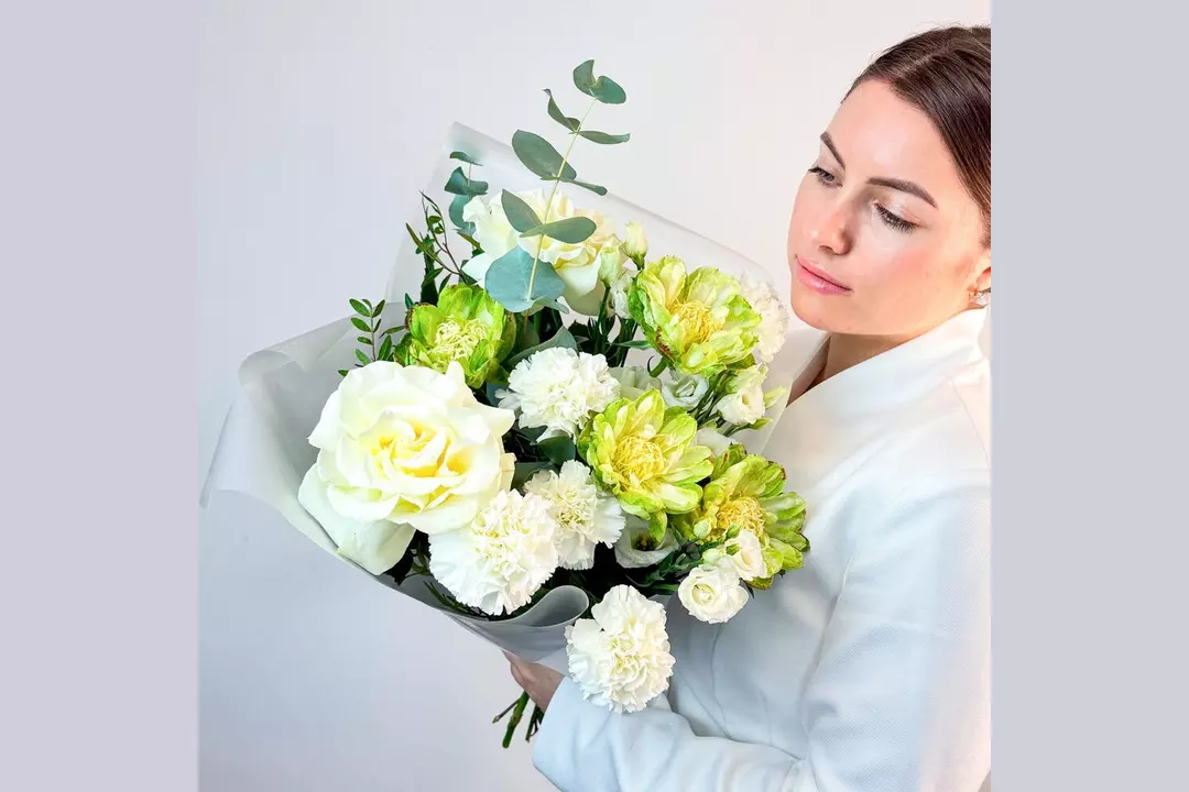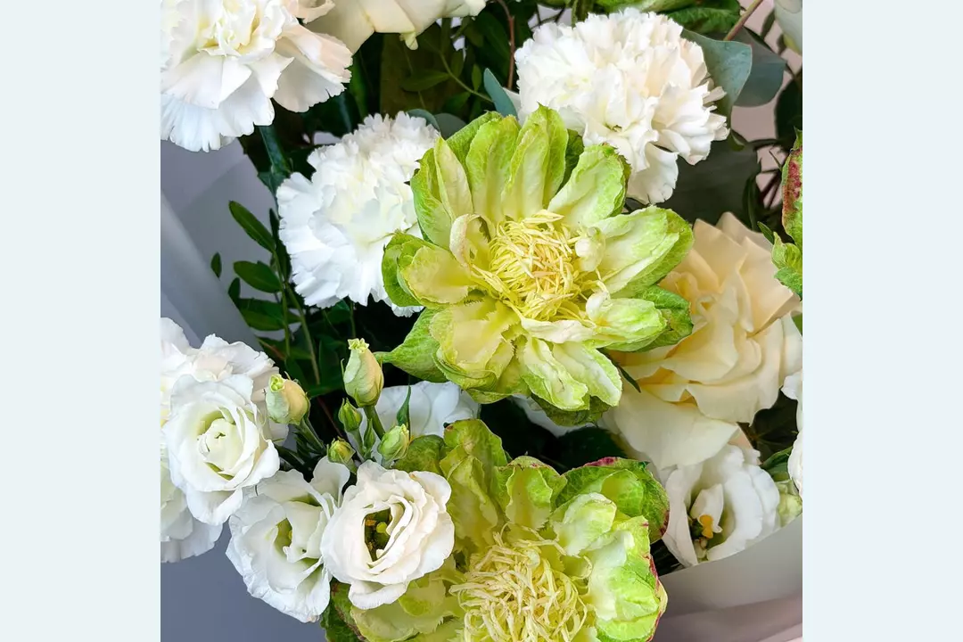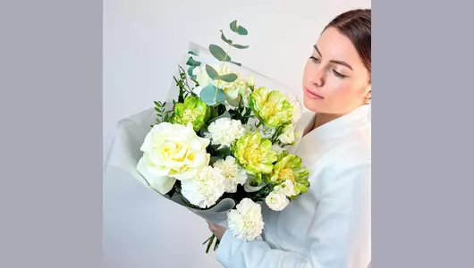 Может ли один букет преобразить пространство, наполнить его красотой и уютом? Этот — может! Но советуем не верить нам на слово, а заказать и проверить 😉 🌷 Чтобы цветы радовали как можно дольше 🌷: * Обновите срез секатором или острым ножом на 1 см под углом 45 градусов. * Поставьте цветы в отстоянную воду комнатной температуры. * Меняйте воду каждый день и обновляйте срез раз в 1–2 дня. * Убирайте нижние листья, чтобы они не касались воды. * Срезайте увядшие бутоны. * Держите цветы подальше от фруктов, сквозняков, прямых солнечных лучей, источников тепла (батареи, настольные лампы, кипящий чайник). Состав Лизиантус - 3 шт. Упаковка - 1 шт. Гвоздика - 5 шт. Лента атласная - 1 шт. Фисташка - 1 шт. Роза французская - 3 шт. Эвкалипт Цинерея - 1 шт. Роза вегги - 4 шт.