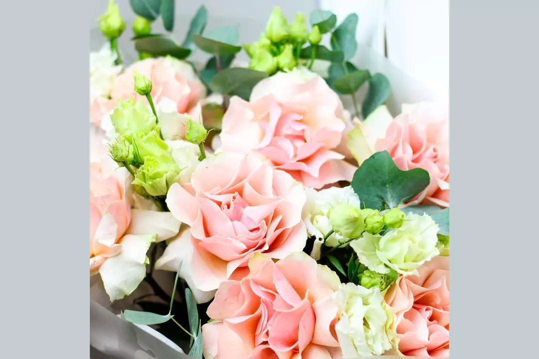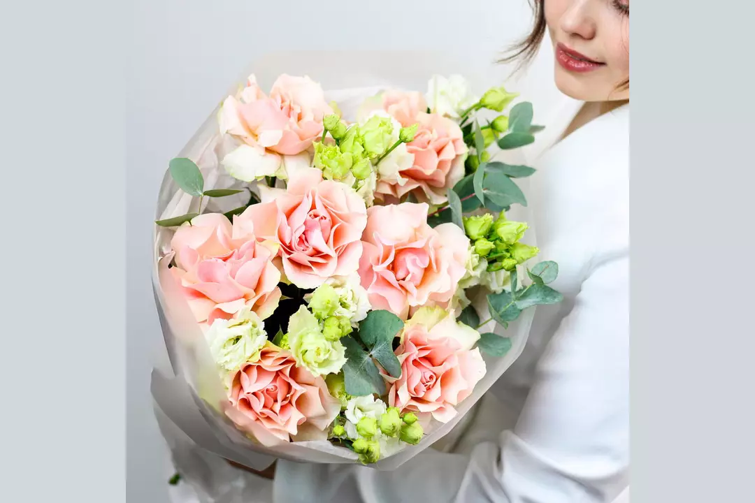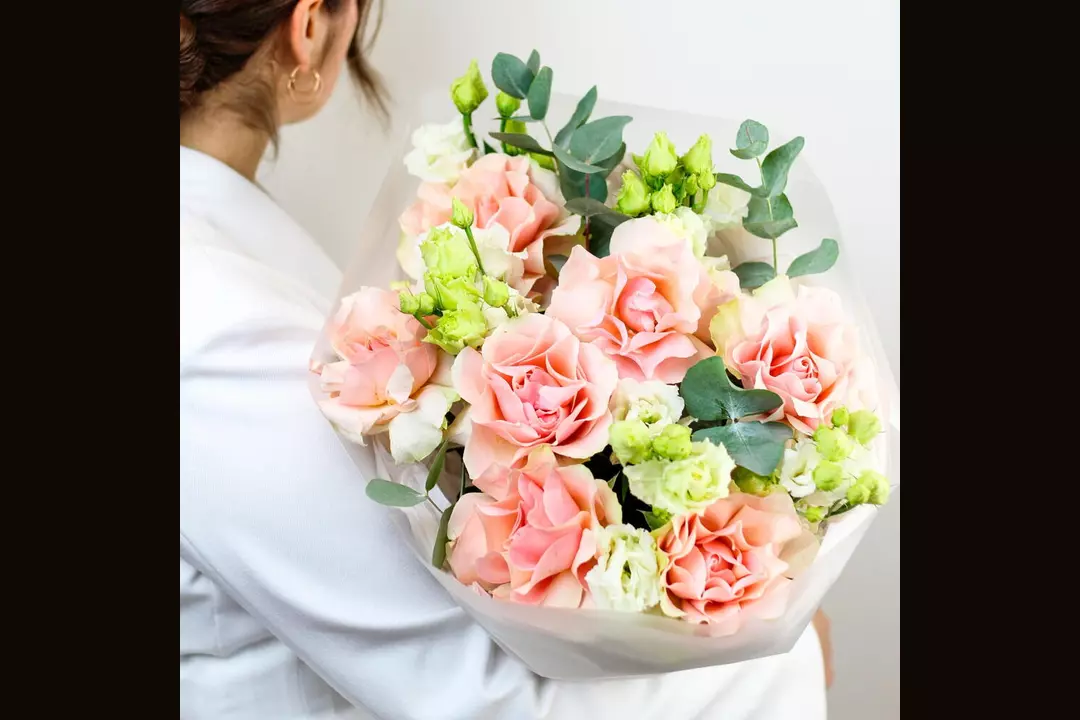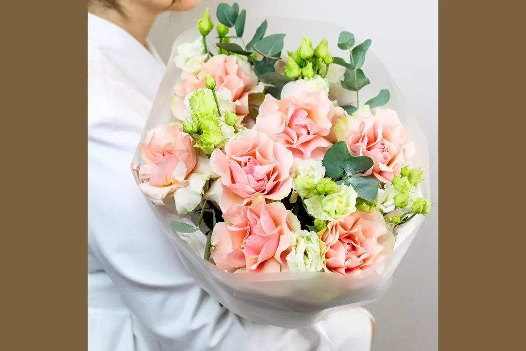 Этот букет — правильный ответ на вопрос «какие цветы заказать». Яркий, свежий и фотогеничный, он станет отличным подарком на любой праздник и просто так, без повода. 🌷 Чтобы цветы радовали как можно дольше 🌷: * Обновите срез секатором или острым ножом на 1 см под углом 45 градусов. * Поставьте цветы в отстоянную воду комнатной температуры. * Меняйте воду каждый день и обновляйте срез раз в 1–2 дня. * Убирайте нижние листья, чтобы они не касались воды. * Срезайте увядшие бутоны. * Держите цветы подальше от фруктов, сквозняков, прямых солнечных лучей, источников тепла (батареи, настольные лампы, кипящий чайник). Состав Лизиантус - 5 шт. Роза одноголовая - 7 шт. Лента атласная - 1 шт. Фисташка - 1 шт. Упаковка дизайнерская - 2 шт.