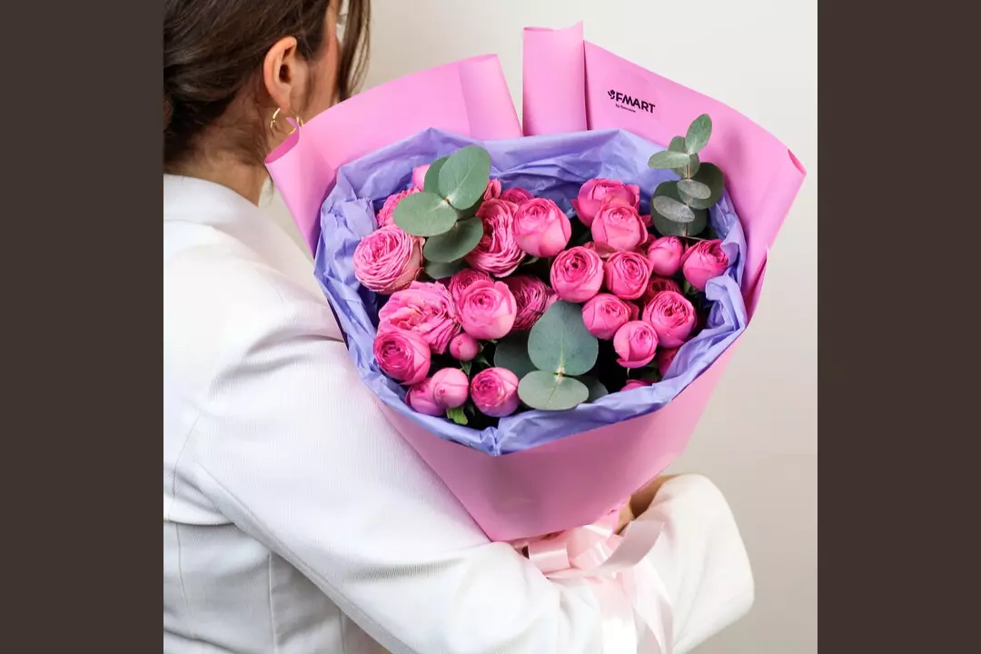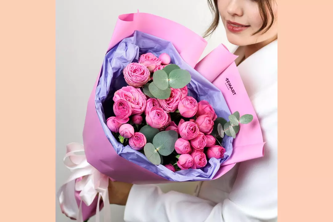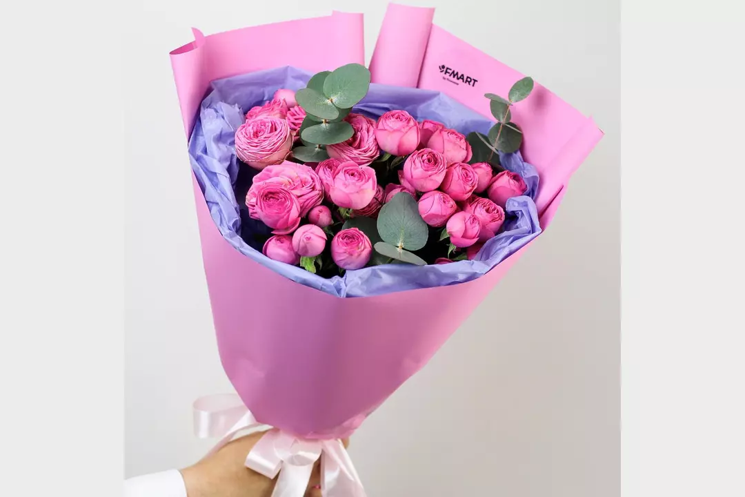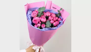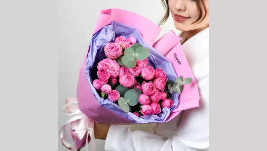 Наш авторский букет — больше, чем просто охапка цветов. Он станет желанным подарком, звездой всех фотосессий и настоящим украшением любого интерьера ✨ 🌷 Чтобы цветы радовали как можно дольше 🌷: * Обновите срез секатором или острым ножом на 1 см под углом 45 градусов. * Поставьте цветы в отстоянную воду комнатной температуры. * Меняйте воду каждый день и обновляйте срез раз в 1–2 дня. * Убирайте нижние листья, чтобы они не касались воды. * Срезайте увядшие бутоны. * Держите цветы подальше от фруктов, сквозняков, прямых солнечных лучей, источников тепла (батареи, настольные лампы, кипящий чайник). Состав Лента - 1 шт. Эвкалипт - 1 шт. Роза кустовая пионовидная - 5 шт. Упаковка дизайнерская - 1 шт.