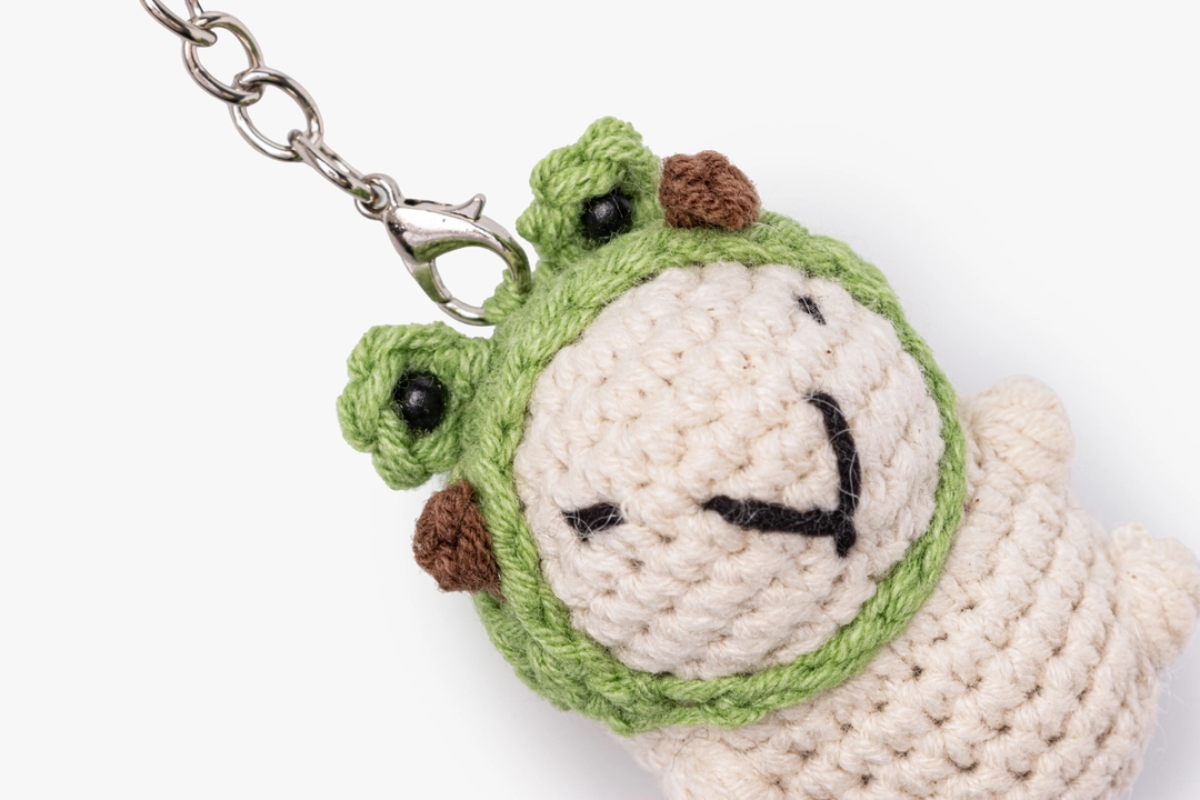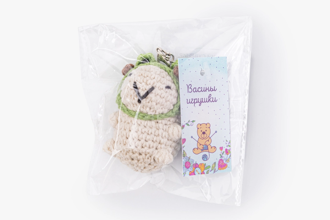 Забавный сувенир ручной работы — капибара в шапке, видя которую невозможно не улыбнуться. Её хочется поставить на видное место, чтобы она поднимала настроение каждый день. Вязаная капибара может поселиться на рабочем столе, полке или отправиться в сумку как талисман. Связана из полухлопка и наполнена холлофайбером, что делает игрушку лёгкой и приятной на ощупь. Создана в мастерской авторских работ «Васины игрушки», где делают исключительно добрые и милые игрушки, хранящие тепло рук мастера. В команде — опытные мастера со всей страны, в том числе люди из социально уязвимой категории граждан. Размер изделия: 7 х 4 х 4,5 см.