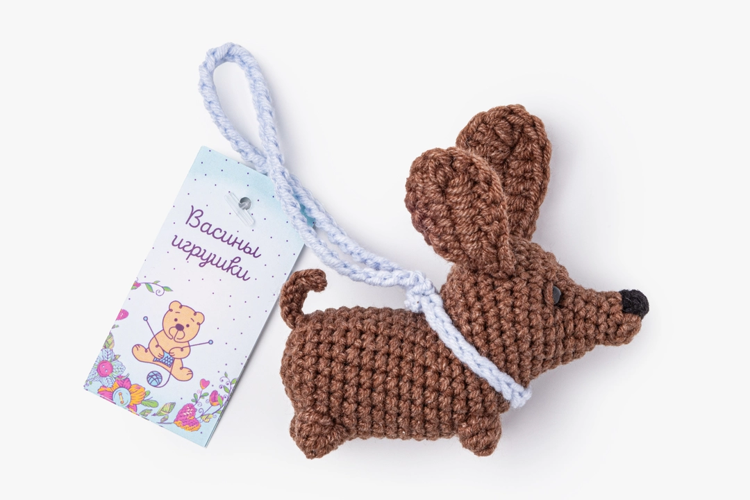 Забавный сувенир ручной работы в виде таксы. Эта милая игрушка может стать ярким аксессуаром или талисманом, её приятно носить с собой или поставить на полку. Связана из полухлопка, наполнена холлофайбером, что делает её лёгкой и приятной на ощупь. Создана в мастерской авторских работ «Васины игрушки», где создаются исключительно добрые игрушки, которые сохраняют тепло рук мастера. В команде — опытные мастера, среди которых люди из социально уязвимой категории граждан. Размер изделия: 8 х 4,5 х 3 см без учета поводка.
