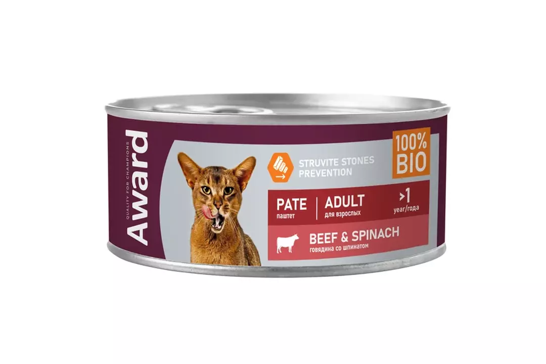 AWARD Adult Корм влаж.паштет из говядины со шпинатом д/кошек конс.100г / Супермаркет