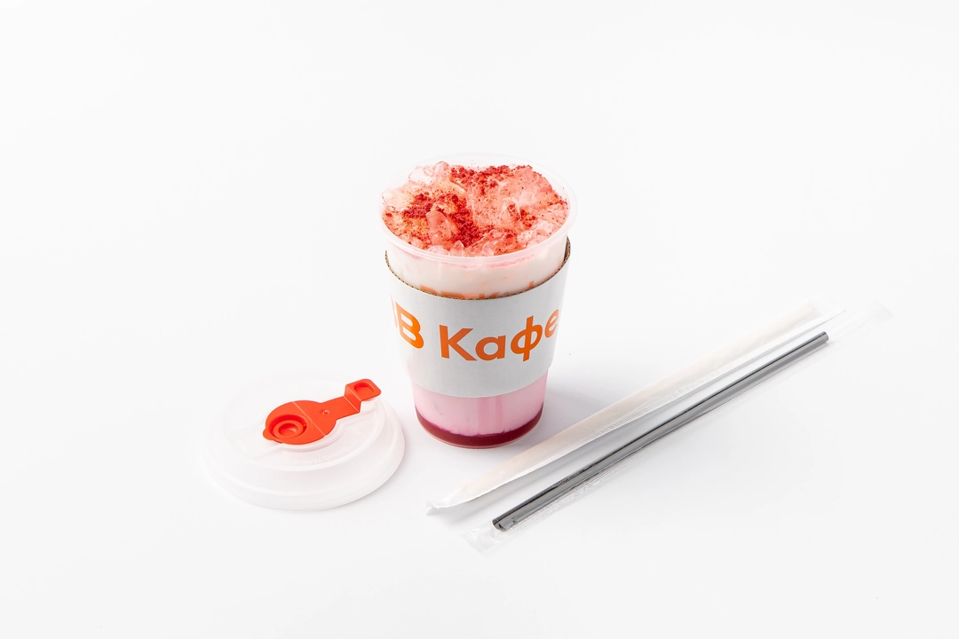 Освежающий латте с ягодно-ореховым вкусом. В основе — кофе, миндальный напиток, немного льда и сироп с ароматом малины и миндаля. Напиток получается мягким, с кремовой текстурой и выразительным ореховым оттенком. Сублимированная малина добавляет лёгкий ягодный акцент. Напиток доступен для самовывоза из магазинов с зоной кафе.