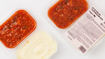 Нежные кусочки говядины, тушённые в томатном соусе со свежими овощами и пикантной аджикой. Изюминкой рецепта является добавление солёных огурчиков, которые придают мясу пикантные нотки. На гарнир — воздушное пюре, приготовленное на сливочном масле.