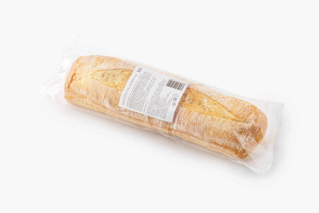 Багет на пшеничной закваске с плотным мякишем и хрустящей корочкой. Подходит для сэндвичей, подачи к супам или в качестве основы для брускетт.