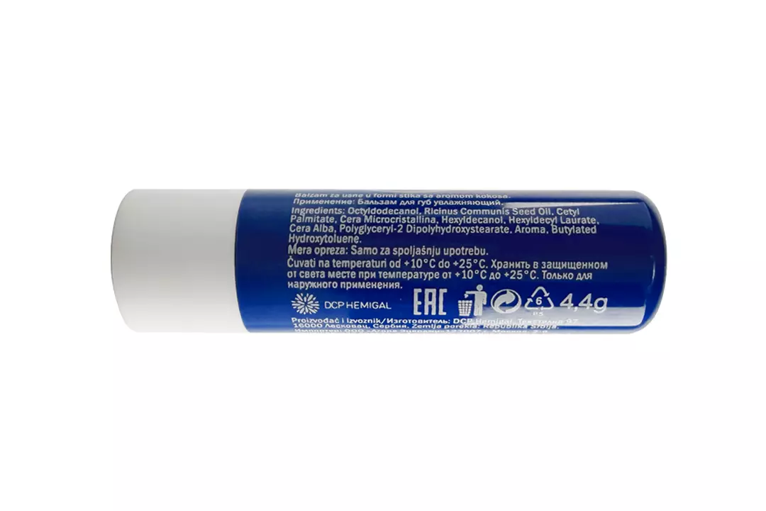 В составе содержатся эффективные ухаживающие компоненты: касторовое масло и пчелиный воск. Они активно питают, увлажняют, придают мягкость и гладкость. Бальзам образует тонкий защитный слой, оберегает от негативного воздействия внешней среды: солнца, ветра и мороза. Обладает плотной питательной текстурой и сохраняет водный баланс нежной кожи губ. Подходит тем, кто занимается зимними видами спорта. Страна производитель-Сербия