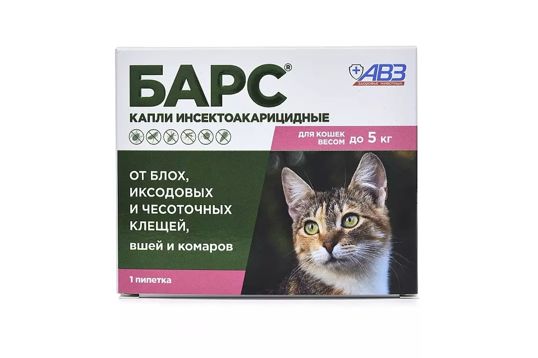 БАРС капли инсектоакарицидные для кошек до 5 кг (1 пип. по 0,5 мл) (АВЗ)