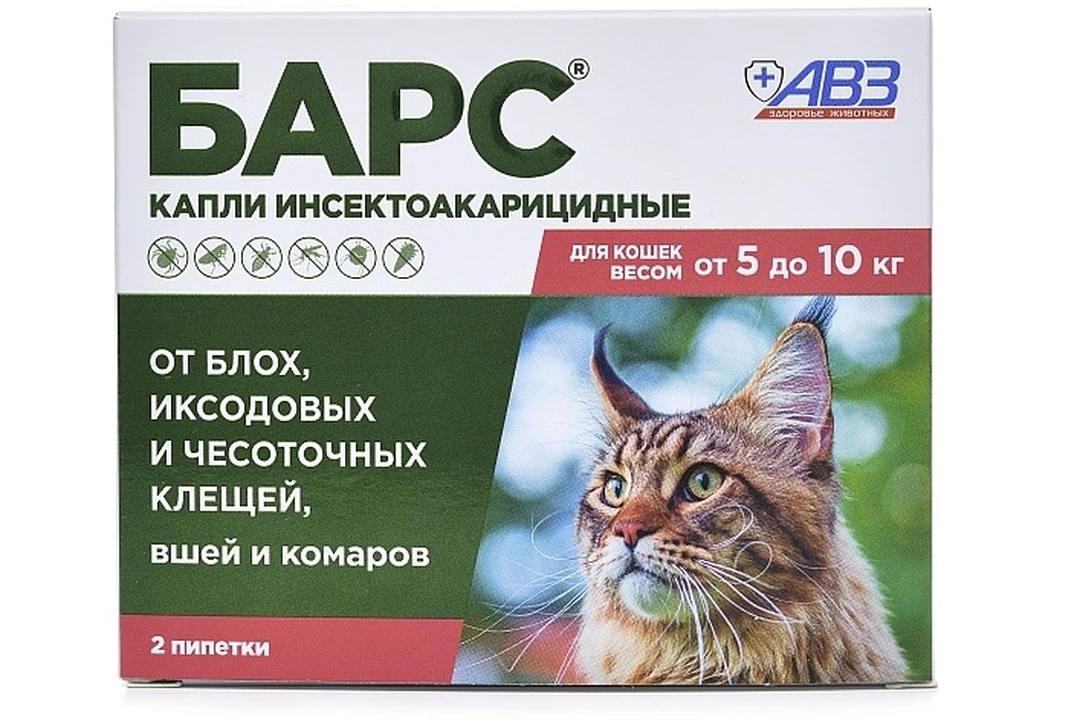 БАРС капли инсектоакарицидные для кошек от 5 до 10 кг (2 пип. по 0,5 мл) (АВЗ) купить с бесплатной доставкой на дом всего за 2 часа из ВкусВилла. Также можно оформить онлайн-заявку на самовывоз и забрать собранный заказ через 30 минут. Цены, отзывы о товарах от наших покупателей, действующие акции на официальном сайте ВкусВилл.