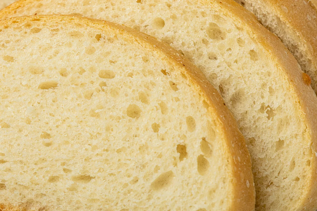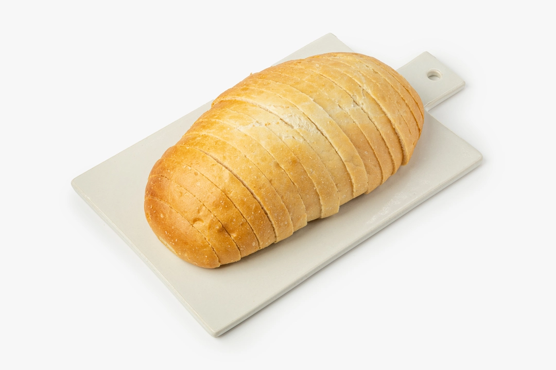 Батон из пшеничной муки приготовлен на опаре и закваске.
