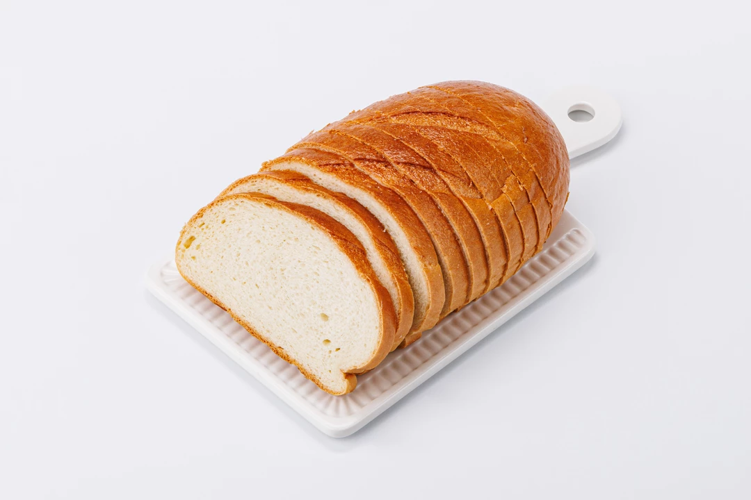 Свежий батон из пшеничной муки высшего сорта. Мы испекли его на сливочном масле, чтобы он стал ещё мягче и пышнее.