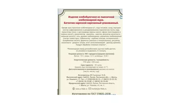 Традиционный, всеми любимый батон. Вкусный, ароматный, с нежным мякишем и золотистой корочкой, изготавливается опарным методом. Имеет приятное сочетание молочно-сливочного вкуса. Нарезан ровными тонкими ломтиками, поэтому бутерброды готовятся мгновенно. Страна производитель-Россия