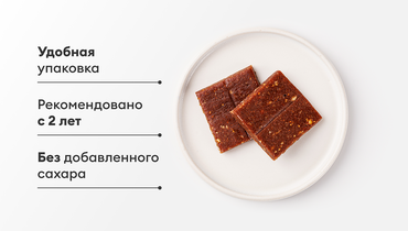 Питательный батончик на основе финиковой пасты, который можно давать малышу уже с двух лет. Обладает сладковатым фруктово-ореховым вкусом и мягкой однородной консистенцией, благодаря которой его удобно жевать даже маленьким детям. Не содержит белого сахара. Вкус этого батончика — клубничный. В нашем ассортименте представлены ещё 3 вкуса: мандарин, яблоко-банан и яблоко-смородина. Попробуйте их все!
