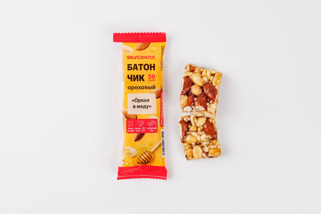 Создан по уникальной рецептуре, разработанной для ВкусВилла. Добавляем орехи и натуральный цветочный мёд