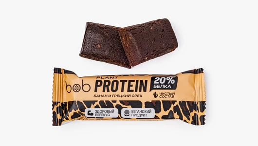 Протеиновый батончик с бананом и грецким орехом — это натуральный растительный продукт с чистым составом. Он приготовлен из смеси подсолнечного, тыквенного и конопляного протеинов с добавлением какао, орехов и фруктов, придающих ему естественную сладость с лёгкой горчинкой. В батончике 20% белка, он не содержит лактозу и белый сахар, который мы заменили сиропом топинамбура. Лакомство можно взять с собой в качестве перекуса в дорогу, на прогулку или тренировку.