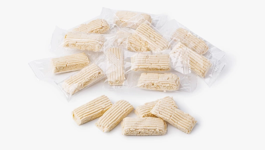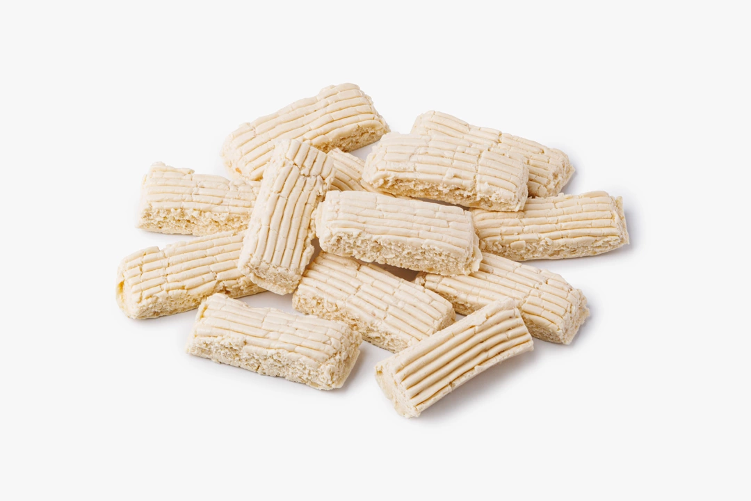 Нежный банановый батончик на протеиновой основе. Сублимированный банан придаёт лакомству натуральную фруктовую сладость, а молочный и сывороточный белок делают его сытным и лёгким. Вкус получается сбалансированным, достаточно сладким, но не приторным. Батончик хорош для быстрого перекуса после физической активности, его можно взять с собой на прогулку или тренировку. В 100 г содержится 27 г белка. Продукт продаётся на развес. Вес одного батончика ~15-20 г