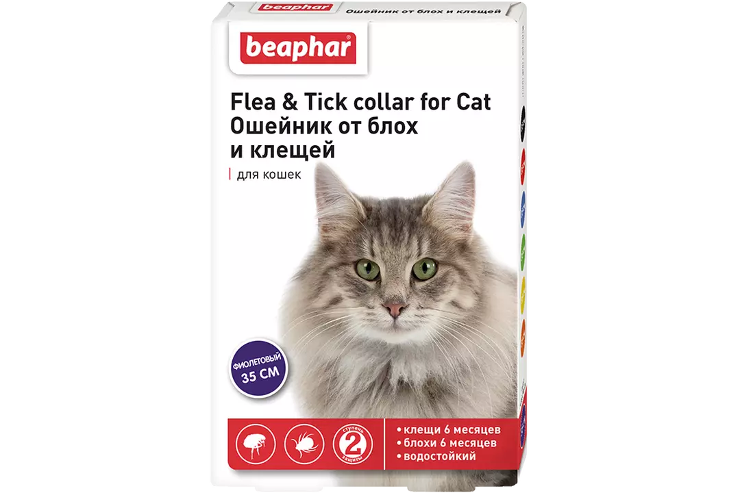 Beaphar ошейник для кошек фиолетовый New от блох и клещей 35 см с 6 месяцев