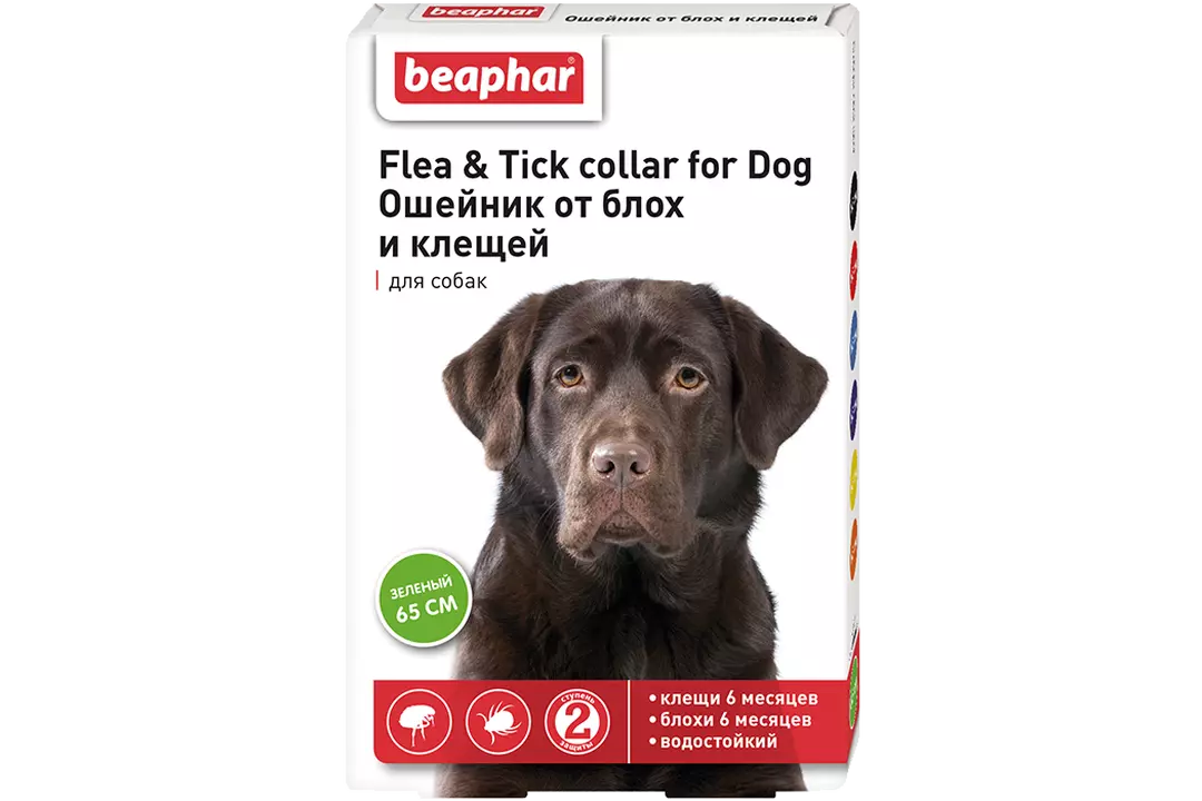 Beaphar ошейник для собак зеленый New от блох и клещей (6 мес.) 65см