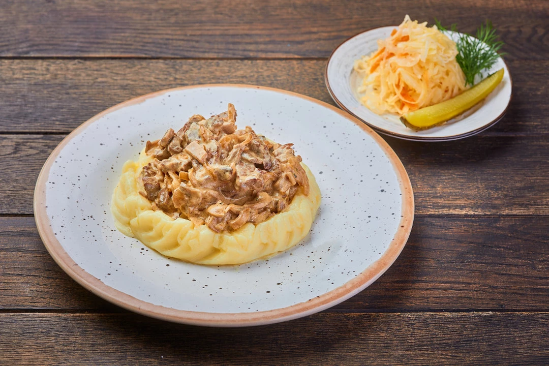 Бефстроганов с картофельным пюре