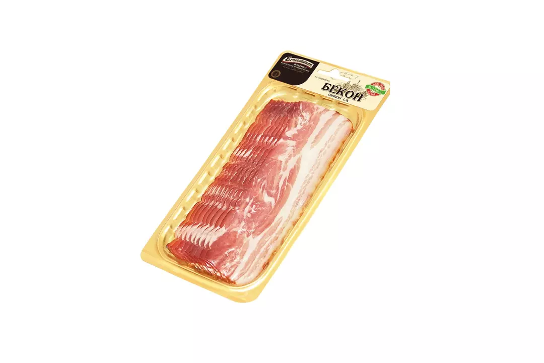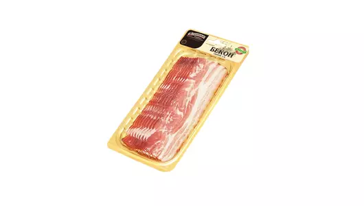 Бекон - сочная свинина с тонкими полосками сала. В России принято называть беконом грудинку, прошедшую этап копчения. Именно этот режим придает продукту сильный аромат и специфический вкус. Бекон - незаменимый компонент сытного завтрака и колоритный «компаньон» в праздничном мясном ассорти. Удобная сервировочная нарезка помещена в вакуум. Такая упаковка позволяет длительно сохранить аромат и свежесть мясных ломтиков. РОССИЯ