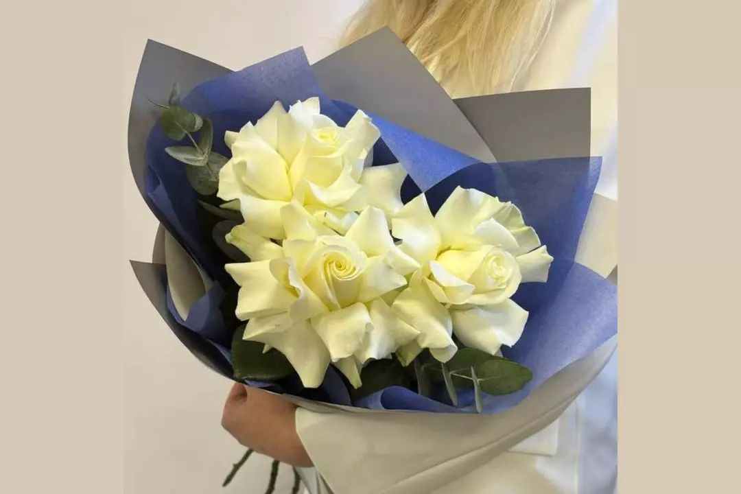 Утонченные, изысканные и торжественные белые розы преподносят по всем красивым поводам. И если вам подарили букет белых роз, то это точно означает что-то невероятно приятное и хорошее. Белая роза - это символ искренности, любви, уважения. Преподнося их, дарящий человек, прежде всего, желает показать свое отношение к получательнице букета. Состав Эвкалипт - 3 шт. Лента атласная - 2 шт. Упаковка дизайнерская - 5 шт. Французская роза - 3 шт.